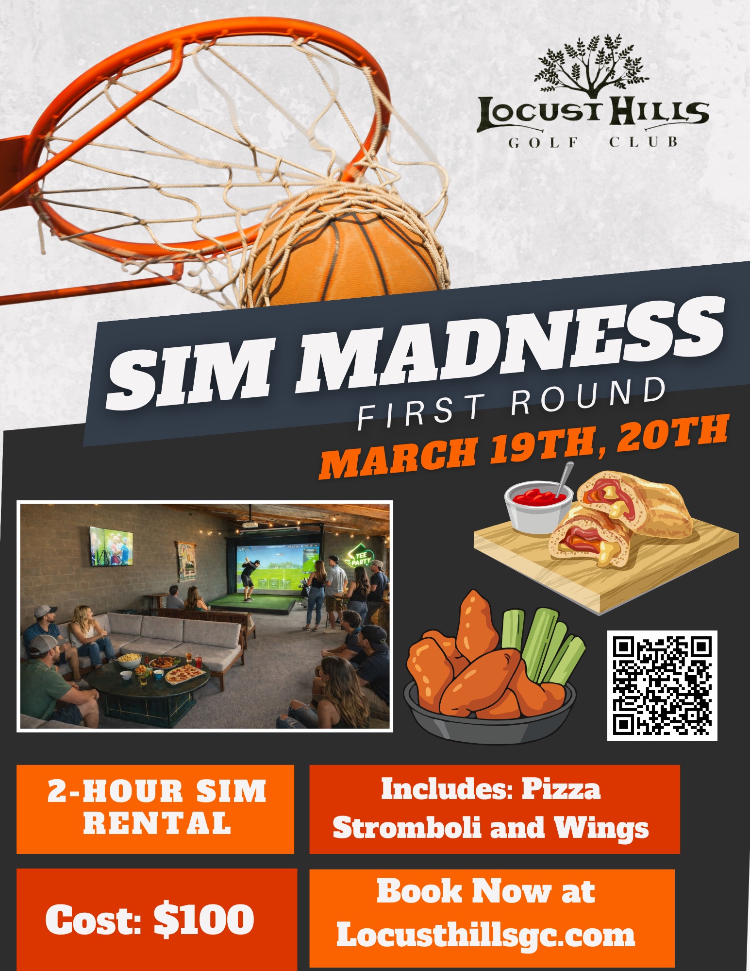 Watch the game and play the game! Rent the Simulator for March Madness. Time slots are 2 hours for $100 and includes a Stromboli Pizza, 20 Boneless Wings, and a Pitcher of Pop. If you want to book multiple simulators, please contact us at (937)265-5152.